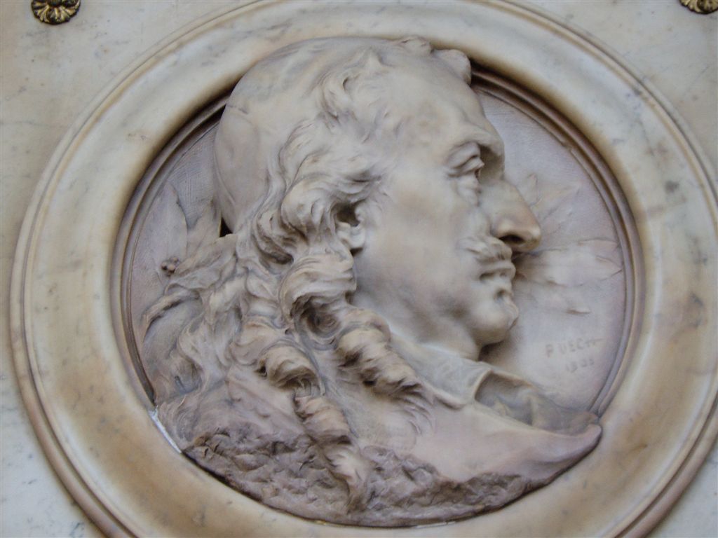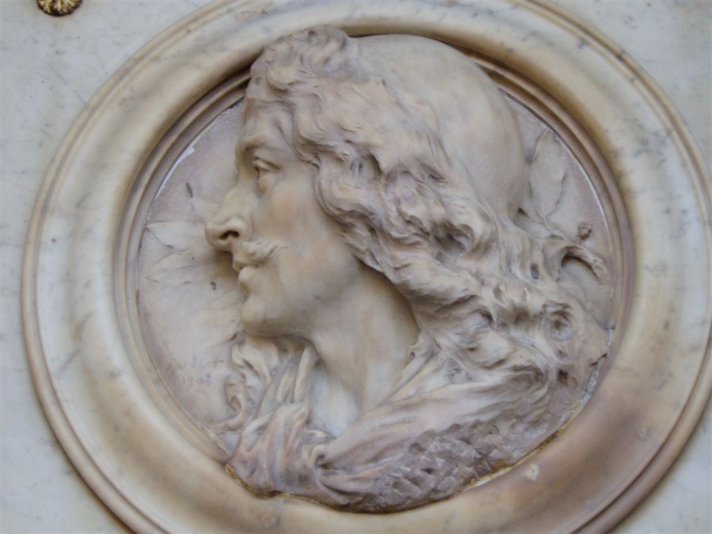 Haut-relief, bronze : portrait du sculpteur, signé D. PUECH, 1893